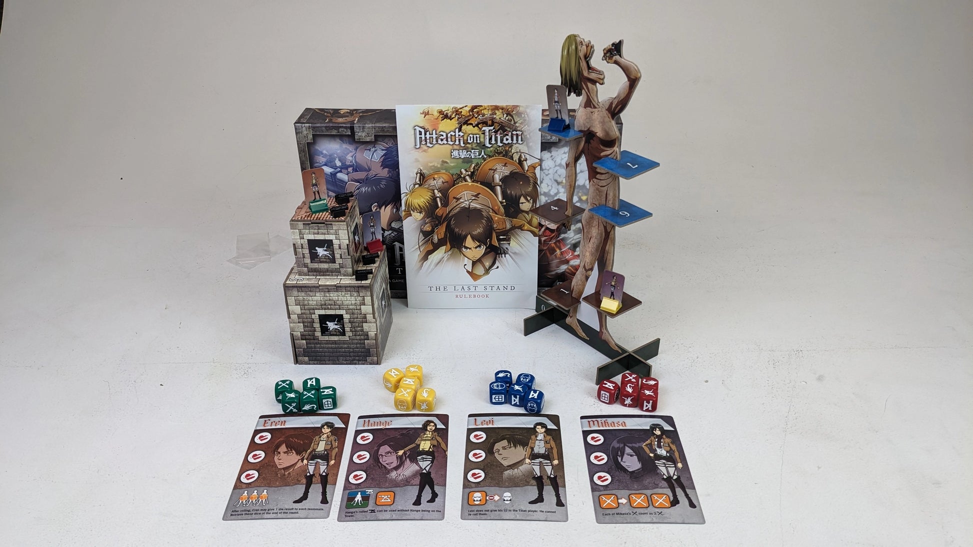 It's all come down to this. Titans have broken through Wall Maria and are heading for the supply depot in Trost. If the depot falls, all the resources needed to continue fighting off these monstrous aberrations will be destroyed and all hope for the last remnants of mankind will be lost. It's up to you and your team to fend off and fell the Titans before they can succeed! Are you ready for the last stand? In this anime board game you can play as your favorite Attack on Titan character. or as the Titan! Protect your very lives and the castle walls to save the day! Positioning is key! The Titan and the castle walls create a vertical playing surface. Move your character up and down as you see fit to avoid Attacks, or tactically position yourself to land a devastating blow on the Titan. Your goal is to weaken the Titan so that it's susceptible to a kill shot. But watch out! The Titan has lots of tricks waiting for you.