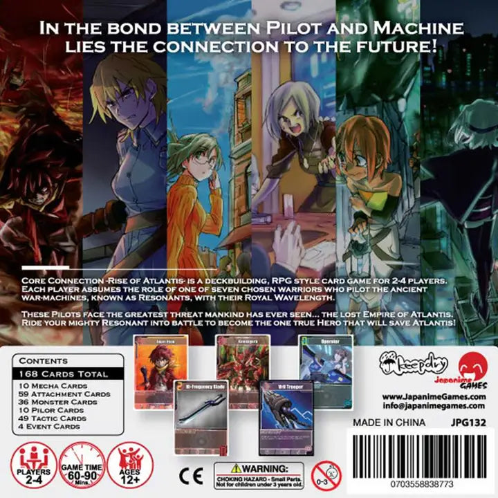 Core Connection is a deck building game for 2-4 players where you take on the role of a pilot of a Resonant, a giant mecha, fighting to free society from the tyrannical reign of its oppressors! Pilot your Resonant with unique tactics and upgrade it with enhancements to defeat the army of Atlantis! Titans Unleashed is the first expansion for Core Connection and Rise of Atlantis, the base game, is needed to play this deck building game!