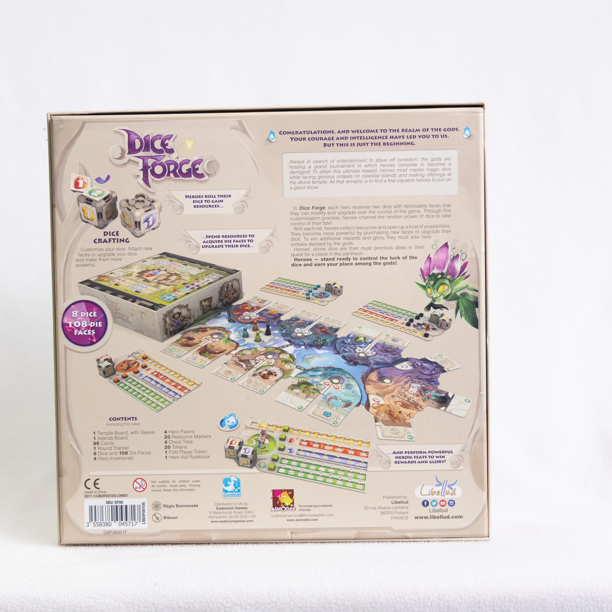 Dice Forge is a development game featuring innovative mechanics based on dice with removable faces. In this dice crafting game, players build their own dice. Roll your dice, manage your resources, complete ordeals before your opponents and explore multiple winning strategies.
