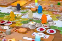 Footprints is a competitive game with asymmetric player powers (each player has their own clan deck) and variable setup through a modular game board. Your abilities in route planning, skill improvement (engine building), and hand management will increase your chances of winning the game.