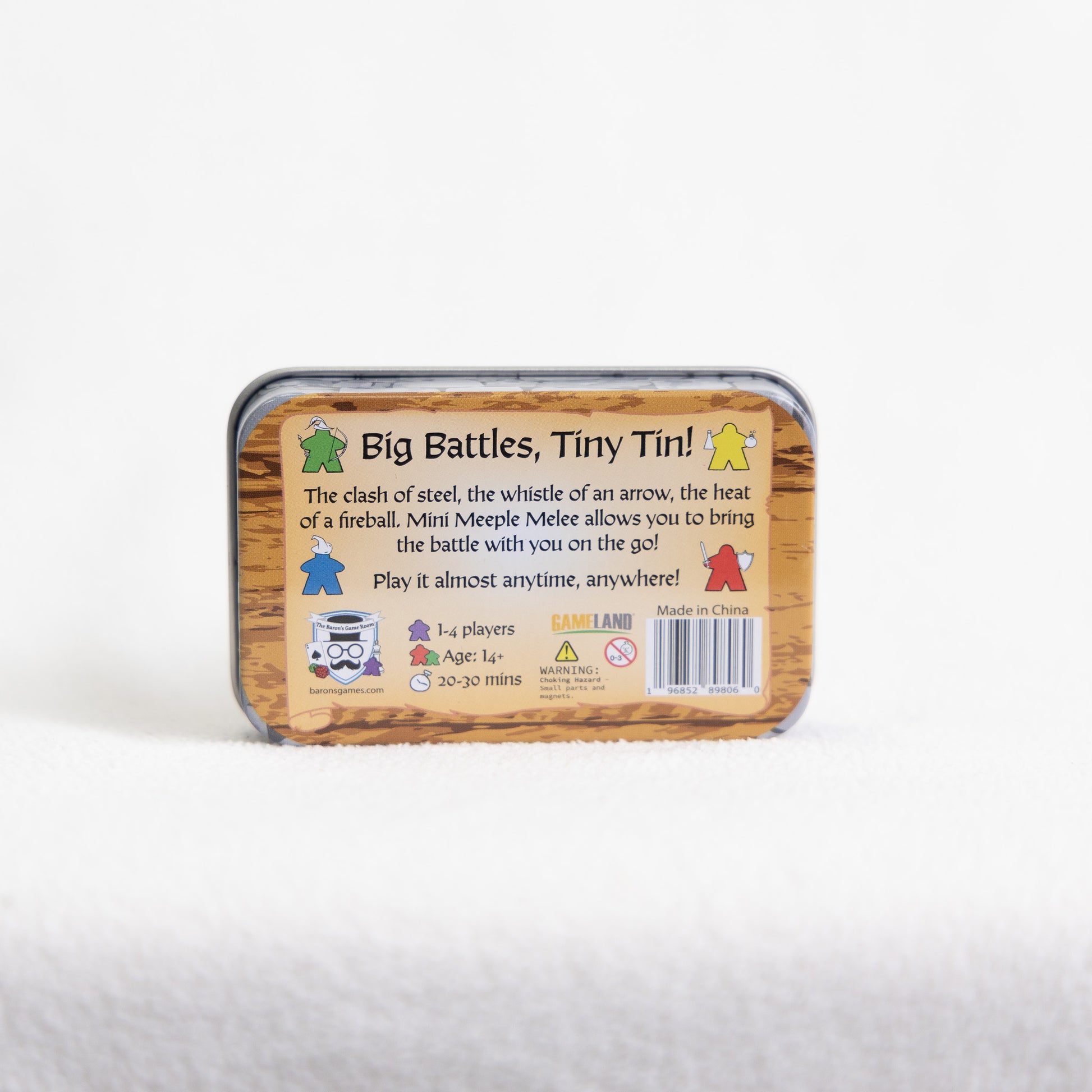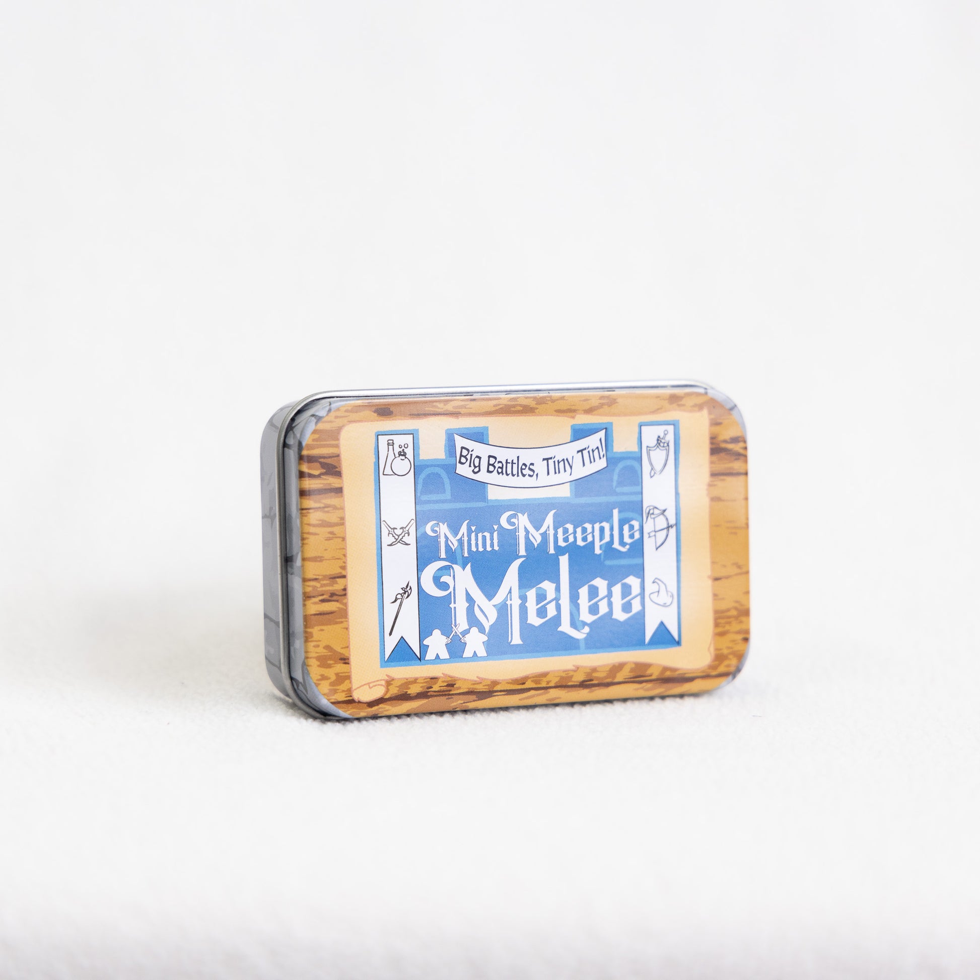 Mini Meeple Melee is a combat arena game you can carry anywhere! 2-4 players select from 6 unique classes and battle in 1 of 3 different modes to the death. You can fight in free-for-all fights, team matches, or boss battles. For such a small package, the battlefield is surprisingly modular. Select your terrain, place the crates and magic circles, and position the tins. Then you're ready to drop in and start brawling!