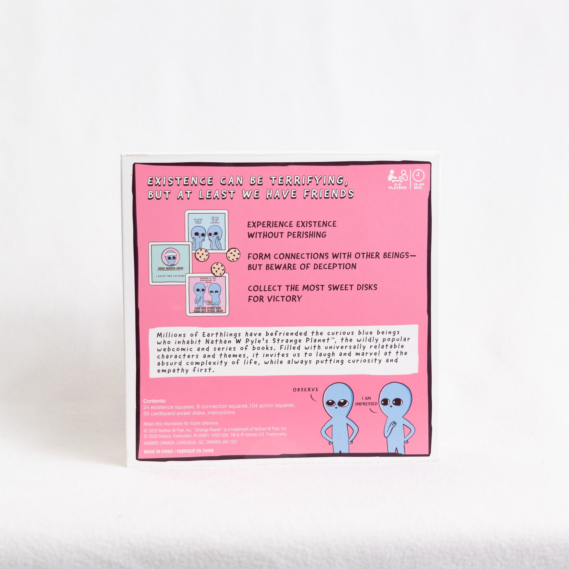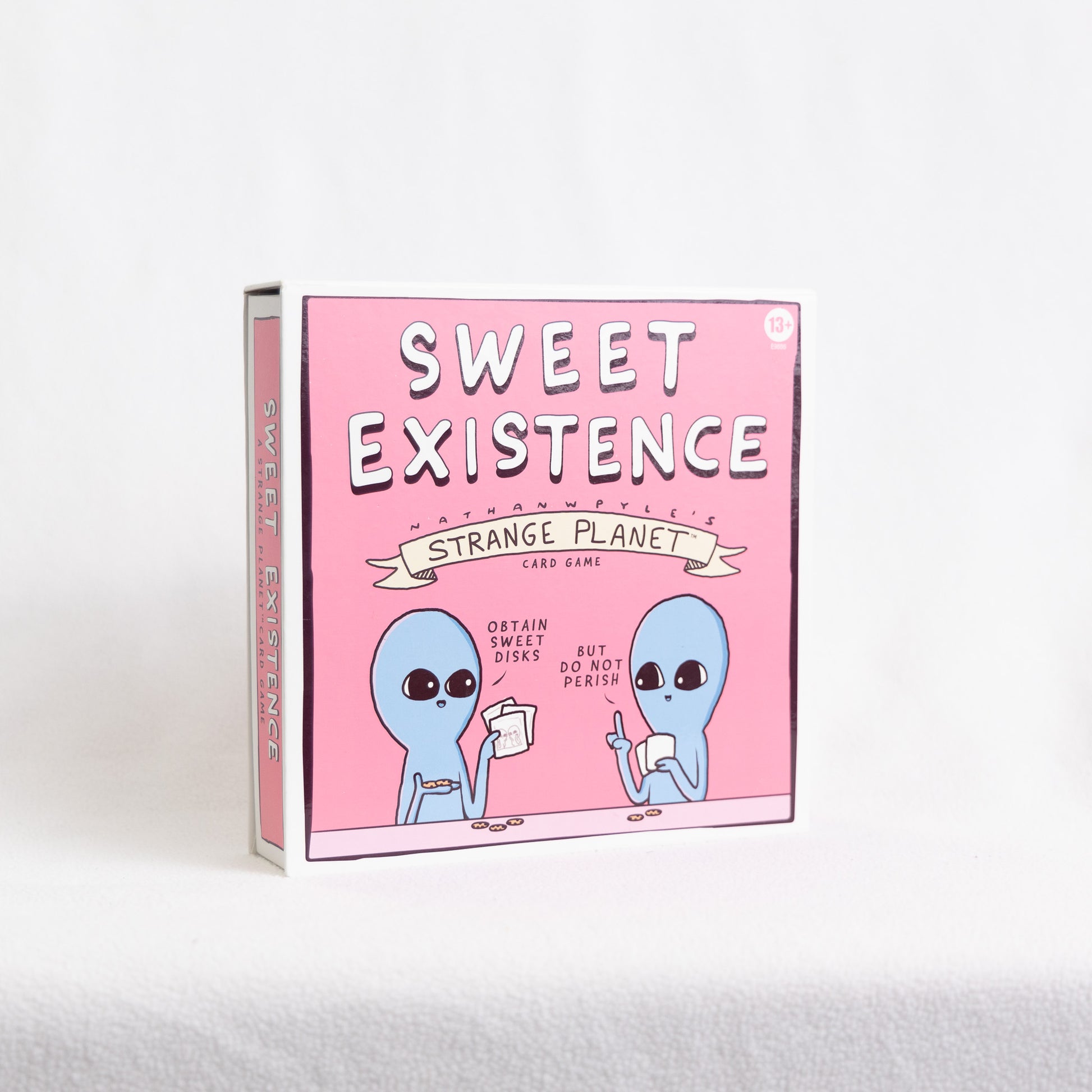 Millions of Earthlings have embraced the genius and creativity of Nathan W. Pyle's Strange Planet webcomic and series of books. And now you can laugh and marvel at the absurd complexities of life with Sweet Existence, a strategic party card game inspired by Strange Planet's universally relatable beings and their unique perspective on the world. This game has players forming connections, experiencing life events, and collecting sweet disks (cookies) -- all while avoiding the dreaded Perish square. Each square (card) features a unique comic depicting the beings' signature humor and simple curiosity. It's a marvelous, family-friendly party game for current and budding Strange Planet fans ages 13 and up.