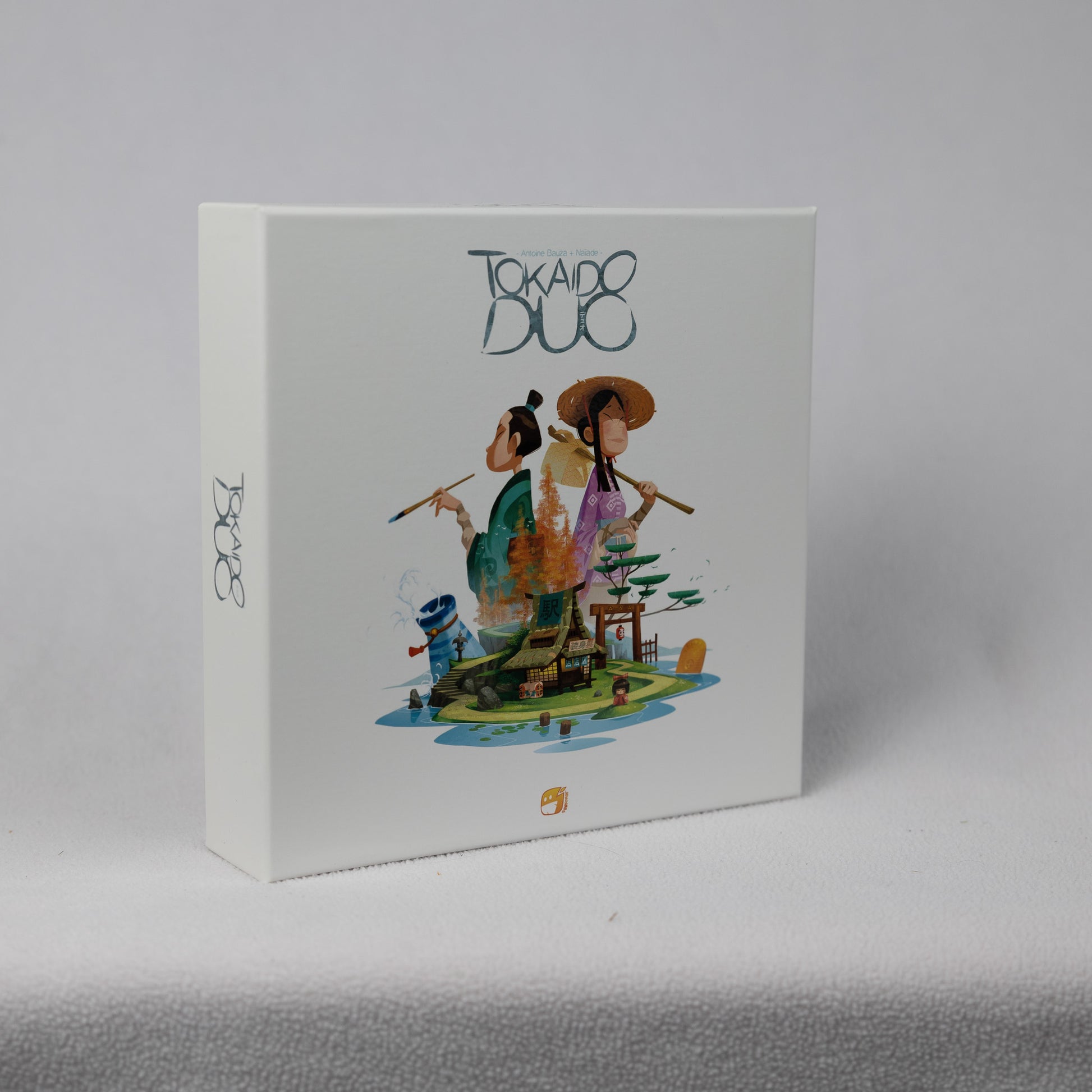 Welcome, travelers, to the Japanese island of Shikoku! Tokaido Duo is a standalone game inspired by Tokaido but featuring completely new mechanisms. 1-2 players use a quick dice draft each turn to steer three unique characters on different tracks around the smallest of Japan’s main islands.