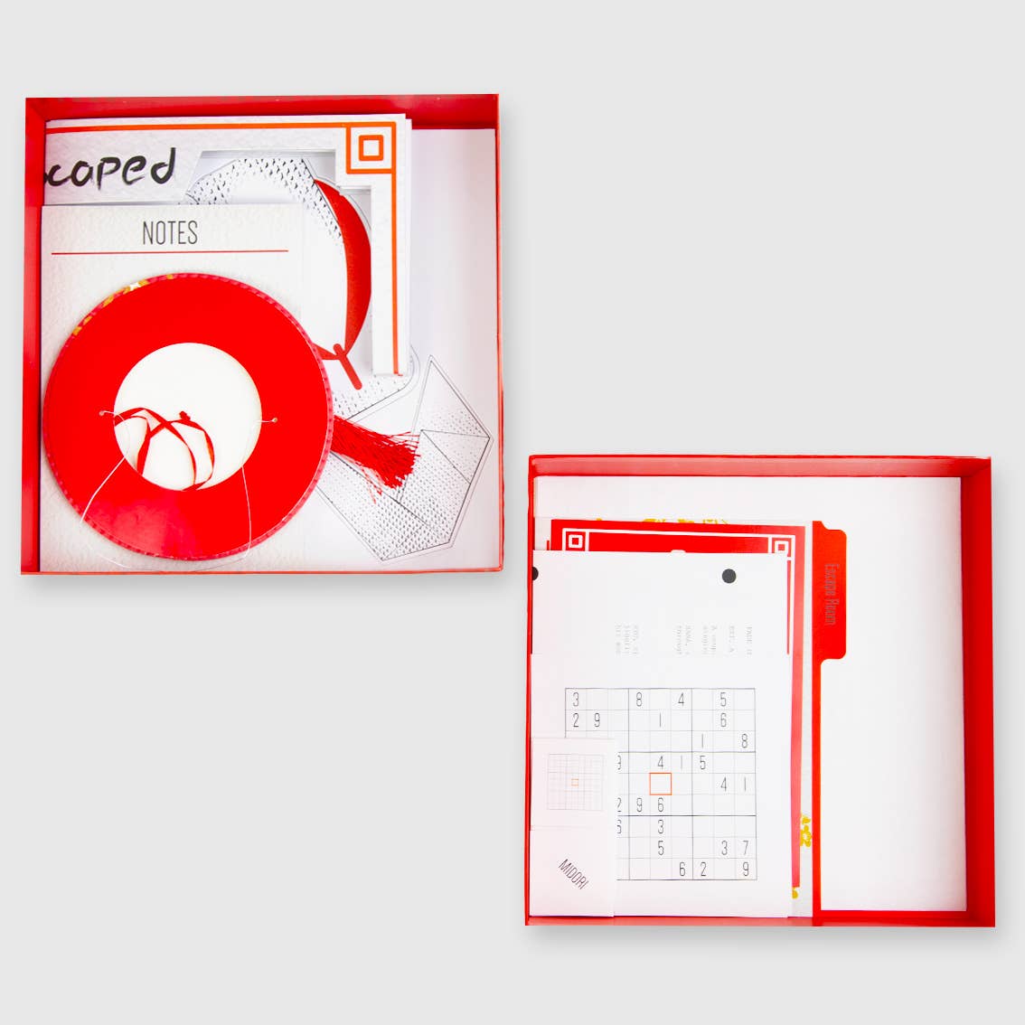 Japanese Themed Escape Room Game Kit by Talking Tables. Trapped inside a cinema in the heart of Tokyo, you must use lateral thinking to work your way out before one hour is up. Solve the sequence of riddles, clues and conundrums to crack codes and escape the room before time runs out. With a fun interactive ending using your smart phone or tablet!