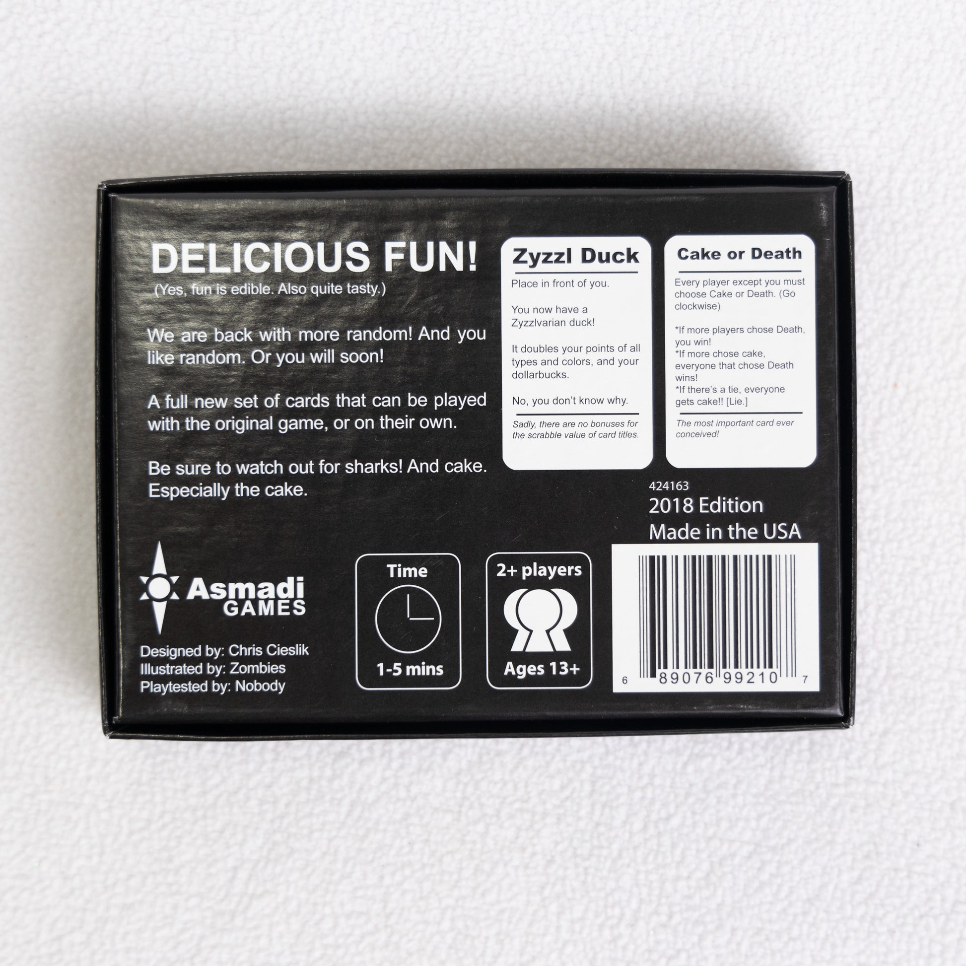 A full new set of cards that can be played with the original game, or on their own. Be sure to watch out for sharks! And cake. Especially the cake.